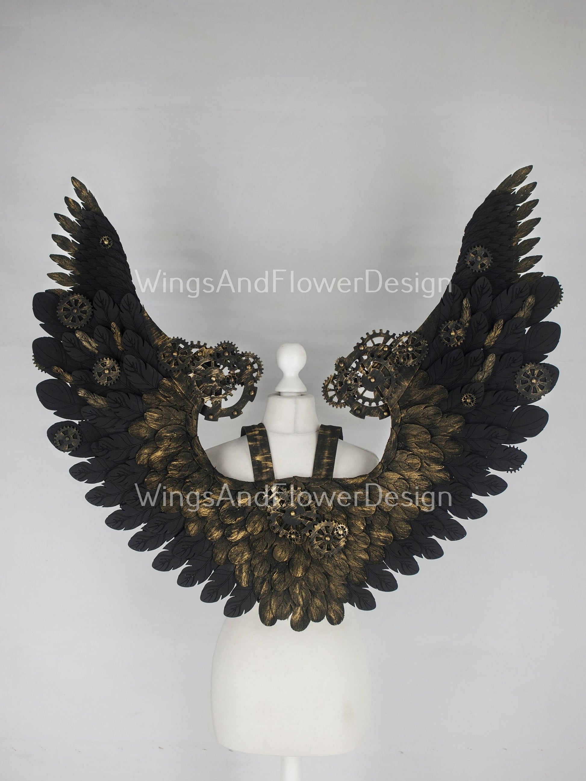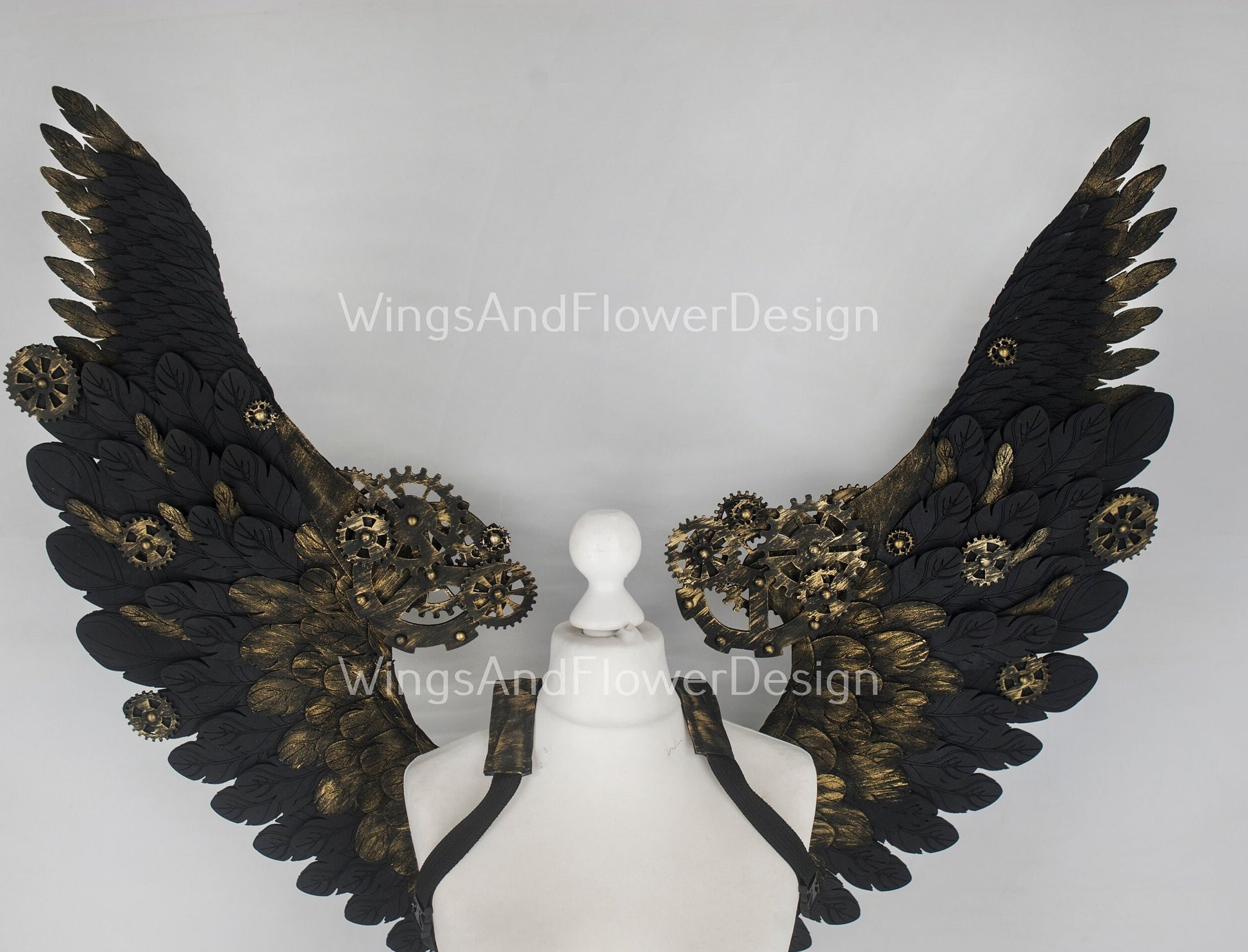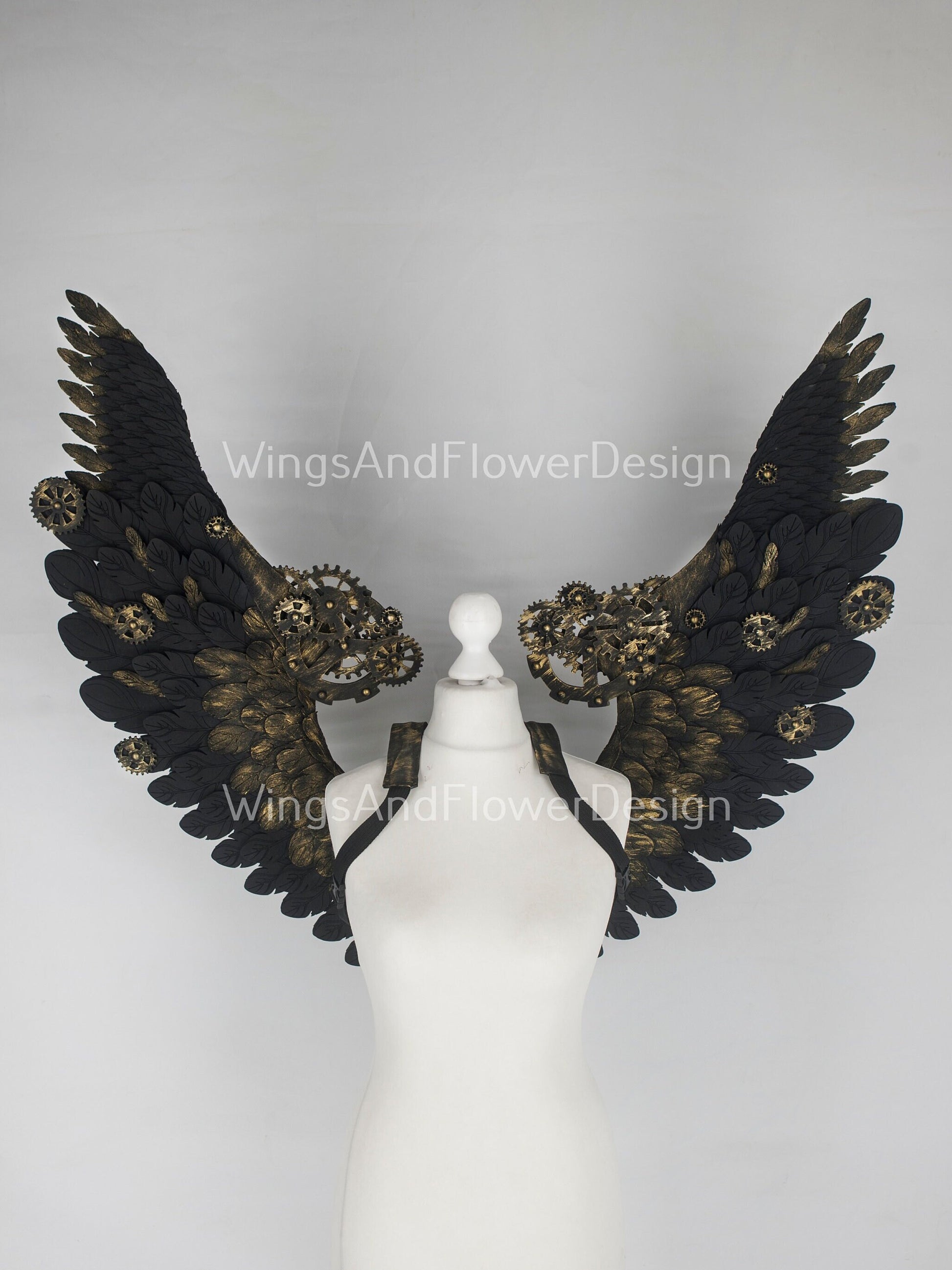 Small black steampunk biomechanical wings, unique wings, steampunk costume, Gothic Wings, wings with cogs, wings, black angel wings