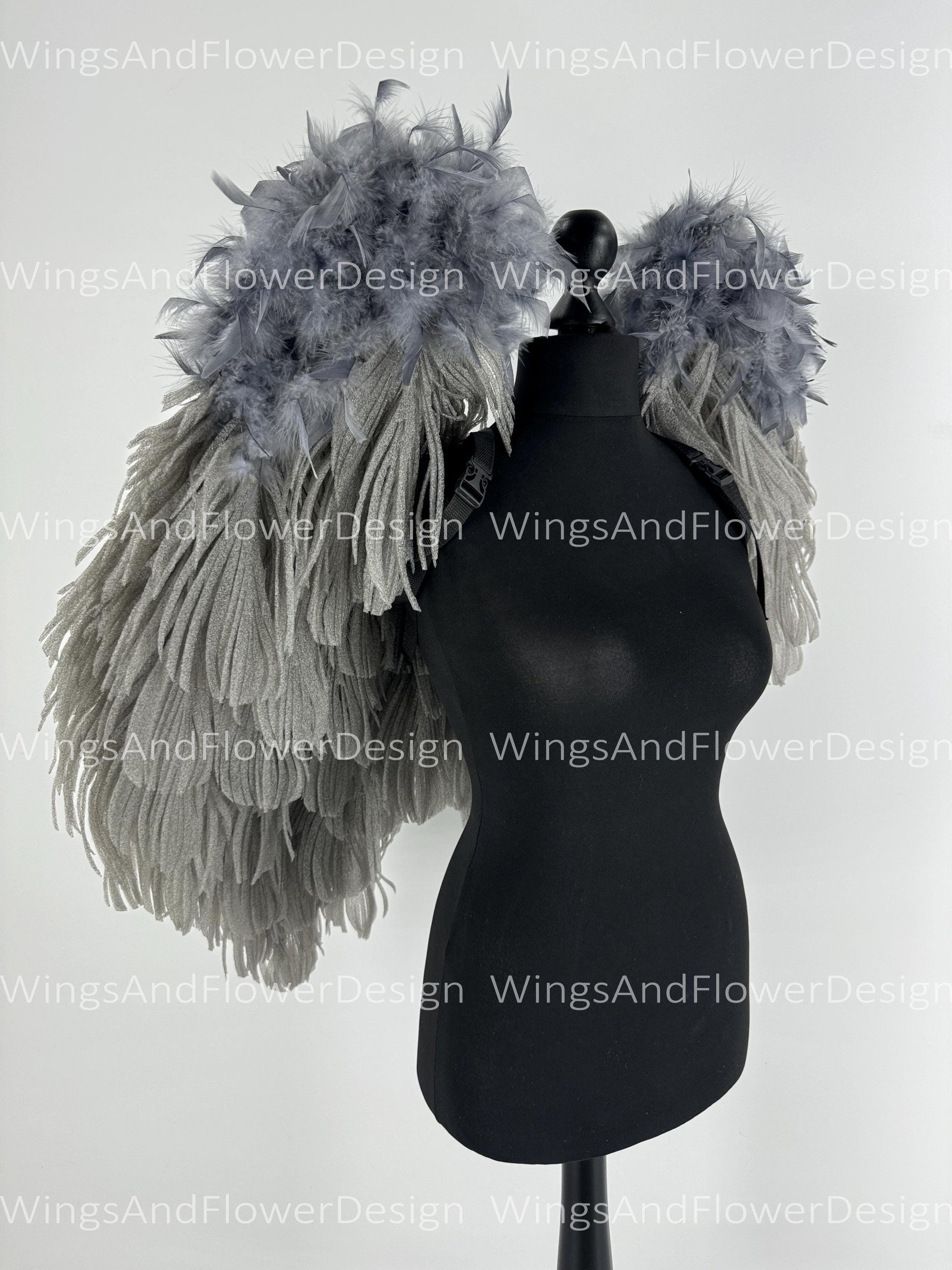 Small Dark gray angel wings Halloween costume wedding wings, Victoria secret angel wings Christmas angel, Lucifer wings for adult kids